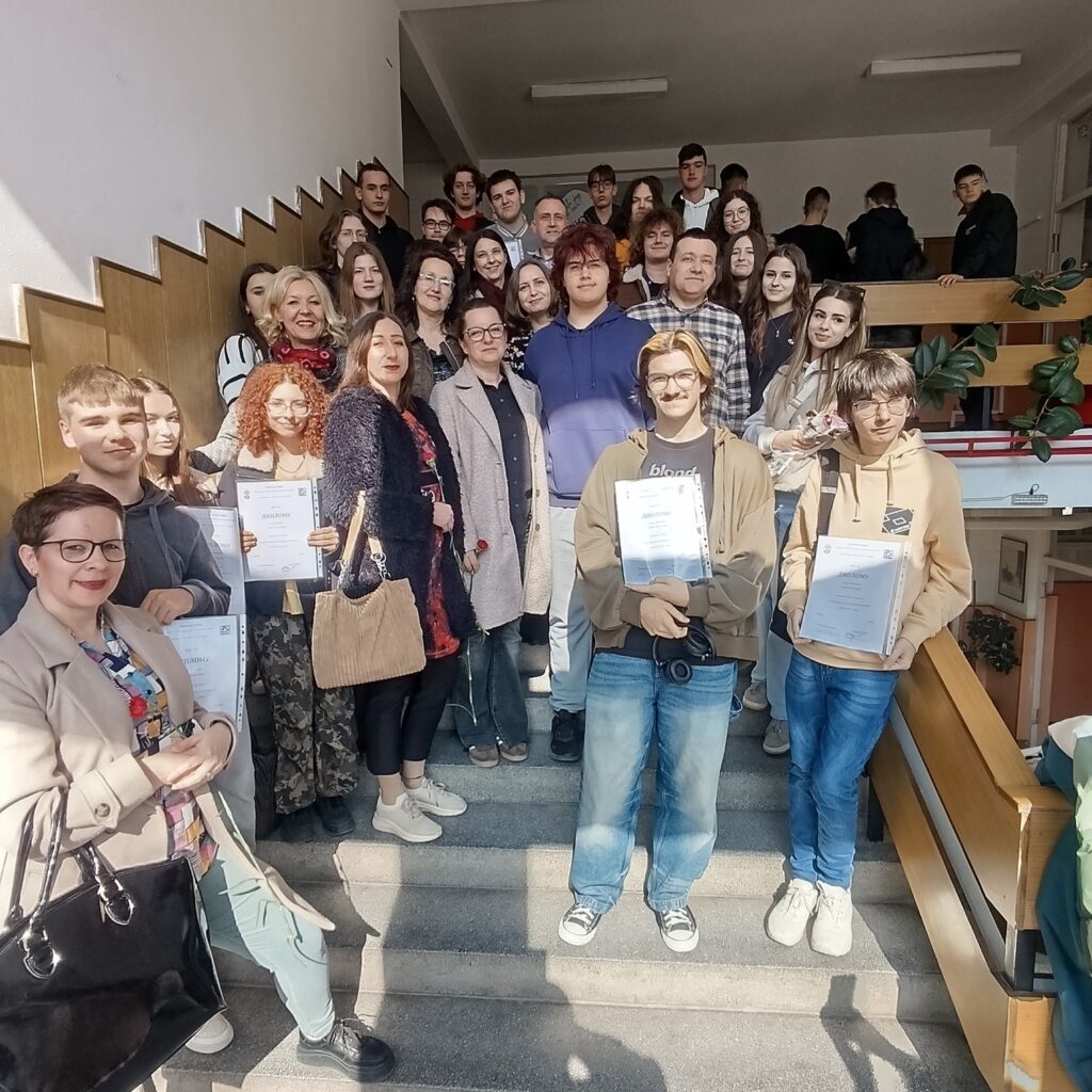 Лепе вести нам долазе из Бољевца, где је у недељу, 8.марта одржано Окружно такмичење из енглеског језика за ученике средњих школа Зајечарског округа, од другог до четвртог разреда. Наши ученици Ђорђе Митић (III/3, ментор Наташа Аранђеловић) и Јован Павловић (II/4, ментор Младен Милошевић) освојили су 3.место у категорији свог разреда, освојивши по 35 поена од могућих 40 и самим тим стекли право учествовањa на републичком нивоу такмичења. Поред Јована и Ђорђа, такмичили су се и следећи ученици: Стојковић Димитрије (II/2), Николић Лука (II/2), Николић Јован (III/2), и Николић Бошко (III/3), који су остварили врло добре резултате, али им је недостајао по неки поен за пласман даље. Честитамо свим ученицима и њиховим менторима, професорима енглеског језика у нашој школи, а Јовану и Ђорђу желимо срећу у наредној рунди такмичења.